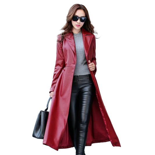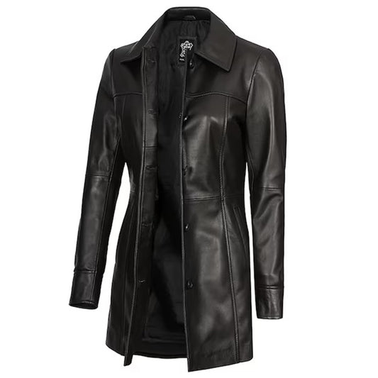 Womenâs Leather Trench Coat Genuine Soft Lambskin Winter Long Overcoat Jacket