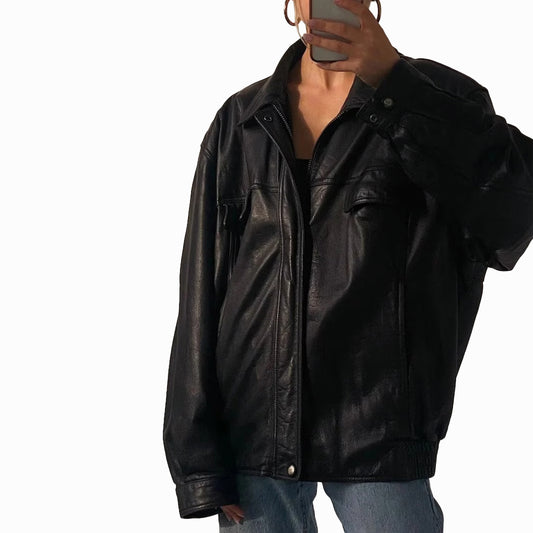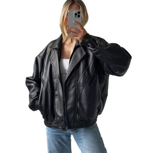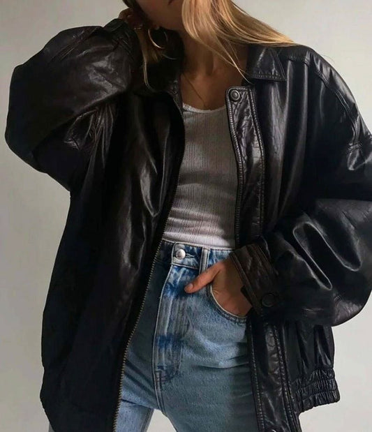 Women Vintage Leather Jacket oversize