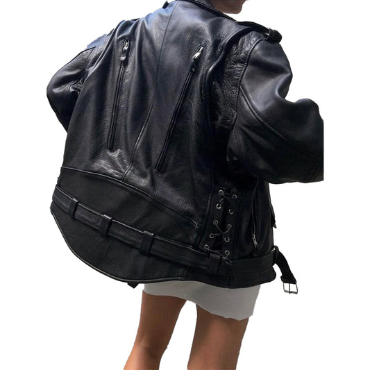 Women's Handmade Oversized Real Leather Vintage Black Biker Jacket