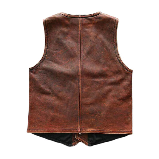 Biker Vintage Tan Brown Sheep Leather Motorcycle Vest | unisex